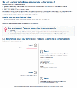 AIDE AU LOGEMENT POUR LES SAISONNIERS AGRICOLES